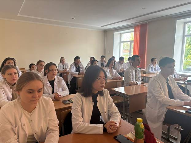 On October 7, 2025, a meeting was held at the Department of History of Kazakhstan and Social-Political Sciences for second-year students of the "Medicine" EP in accordance with the fundamental provisions of the President of the Republic of Kazakhstan's Address to the People of Kazakhstan, as well as the department's educational work plan. Yevgeniya Sergeyevna Khabarova, a specially invited attorney from the Karaganda region's Bar Council, held a presentation on the relevant topic "Medical Malpractice and Its Consequences: A Legal View on Errors and Liability.".jpeg)