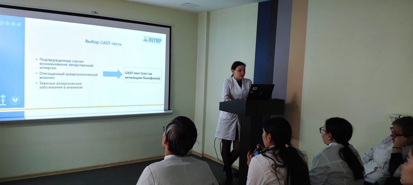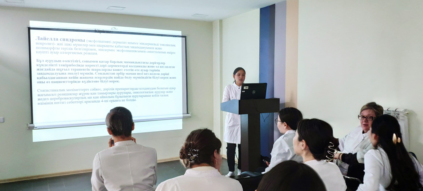 The European Academy of Allergy and Clinical Immunology has designated November 21st as World Anaphylaxis Awareness Day. As part of this global initiative, the Department of Internal Medicine hosted a roundtable discussion on "Drug Hypersensitivity" on November 28, 2024. The roundtable was organized by the faculty of the "Allergology-Immunology (Adult and Pediatric)" program, led by O.Yu. Dedova, the program director, Assistant Professor M.R. Izmailovich, Professor L.Sh. Seksanova, Lecturer A.V. Koshkarbaeva, and Assistant Professor A.V. Skvortsova from the Department of Obstetrics, Gynecology, and Perinatology, in collaboration with resident allergist-immunologists. Students from the second, third, fourth, and sixth years, as well as students from group 4-025 who are participating in an exchange program from Ryazan, Russia, were in attendance.