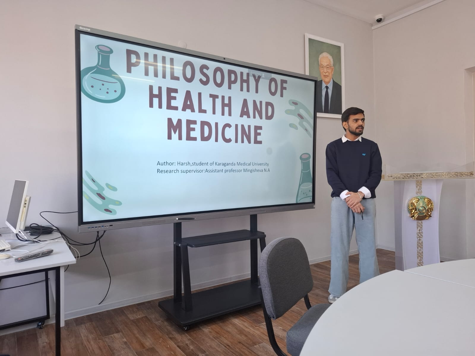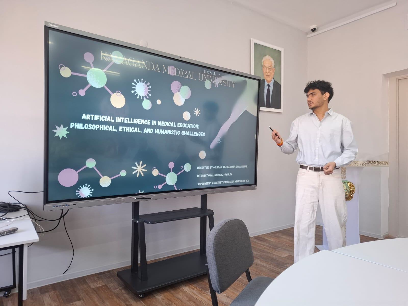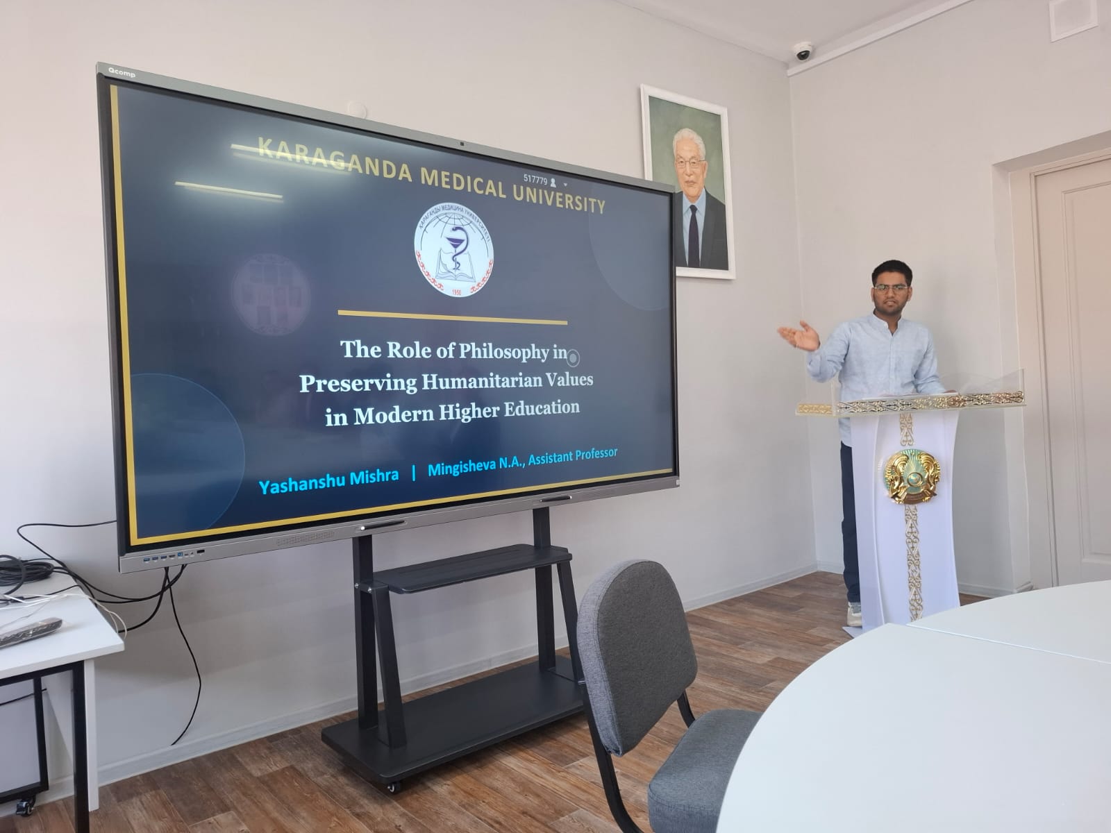 Халықаралық медицина факультетінің 2-курс студенттері қазақстандық философ, профессор Бисембай Ерғалиевич Колумбаевтың рухына арналған «Өзгерістер дәуіріндегі гуманитарлық білім» атты Халықаралық ғылыми-практикалық конференцияға қатысты. Аталған конференция 2026 жылғы 19 наурыз күні Е.А. Бөкетов атындағы Қарағанды ұлттық зерттеу университетінде өтті. Студенттер заманауи жоғары білім берудің гуманитарлық аспектілерін, медициналық білім беруде жасанды интеллектіні қолданудың этикалық мәселелерін, денсаулық пен медицинаның философиясын қамтитын пәнаралық тақырыптар бойынша баяндамаларын ұсынды. Бұл тақырыптар конференция қатысушыларының үлкен қызығушылығын тудырып, көптеген сұрақтар қойылды. Конференция ұйымдастырушылары қарастырылған мәселелердің өзектілігін және Қазақстан тарихы және әлеуметтік-саяси пәндер кафедрасының ассистент профессоры Н.А. Мингишеваның жетекшілігімен студенттердің дайындық деңгейінің жоғары екенін атап өтті.
