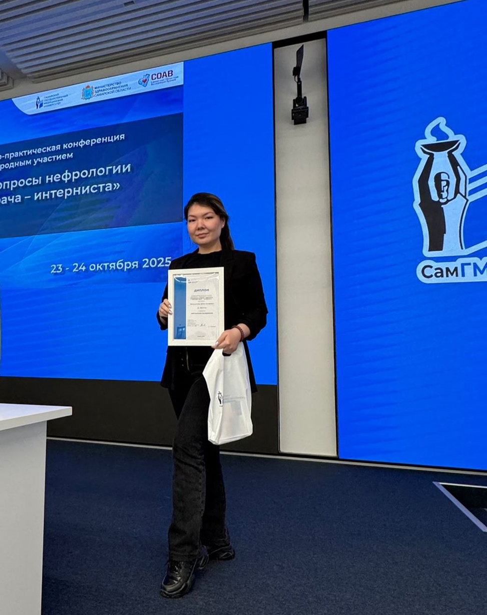 23-24 октября 2025 года представители НАО «Карагандинский медицинский университет» приняли участие в III Всероссийской научно-практической конференции с международным участием «Актуальные вопросы нефрологии в практике врача-интерниста», которая прошла в городе Самара (Российская Федерация). На конференции выступили с докладами ассоциированный профессор кафедры внутренних болезней И.В. Бачева (доклад «Возможности назначения SGLT2 у пациентов на диализе. Первые клинические результаты») и профессор кафедры внутренних болезней Д.Х. Рыбалкина (доклад «Генетические детерминанаты риска почечной дисфункции у спортсменов: роль полиморфизмов AGT (rs699) и AQP1 (rs 1049305)»). .png)