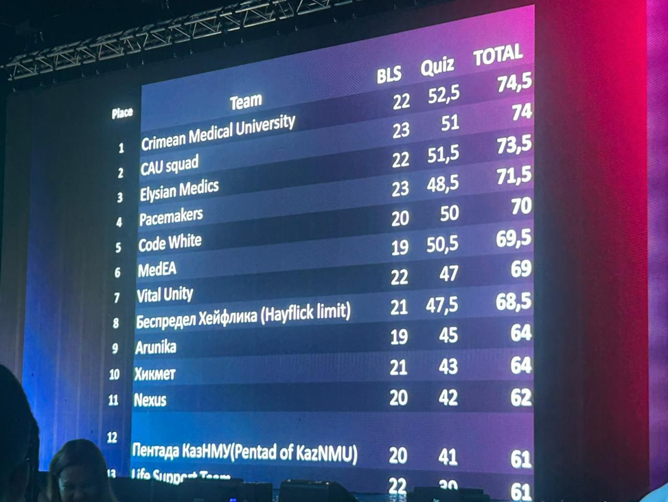 Команда достойно прошла все этапы олимпиады — от BLS (Basic Life Support) до решения клинических кейсов, войдя в ТОП-10 лучших команд среди 46 участников, а также заняв ведущее место среди вузов, представлявших Республику Казахстан.